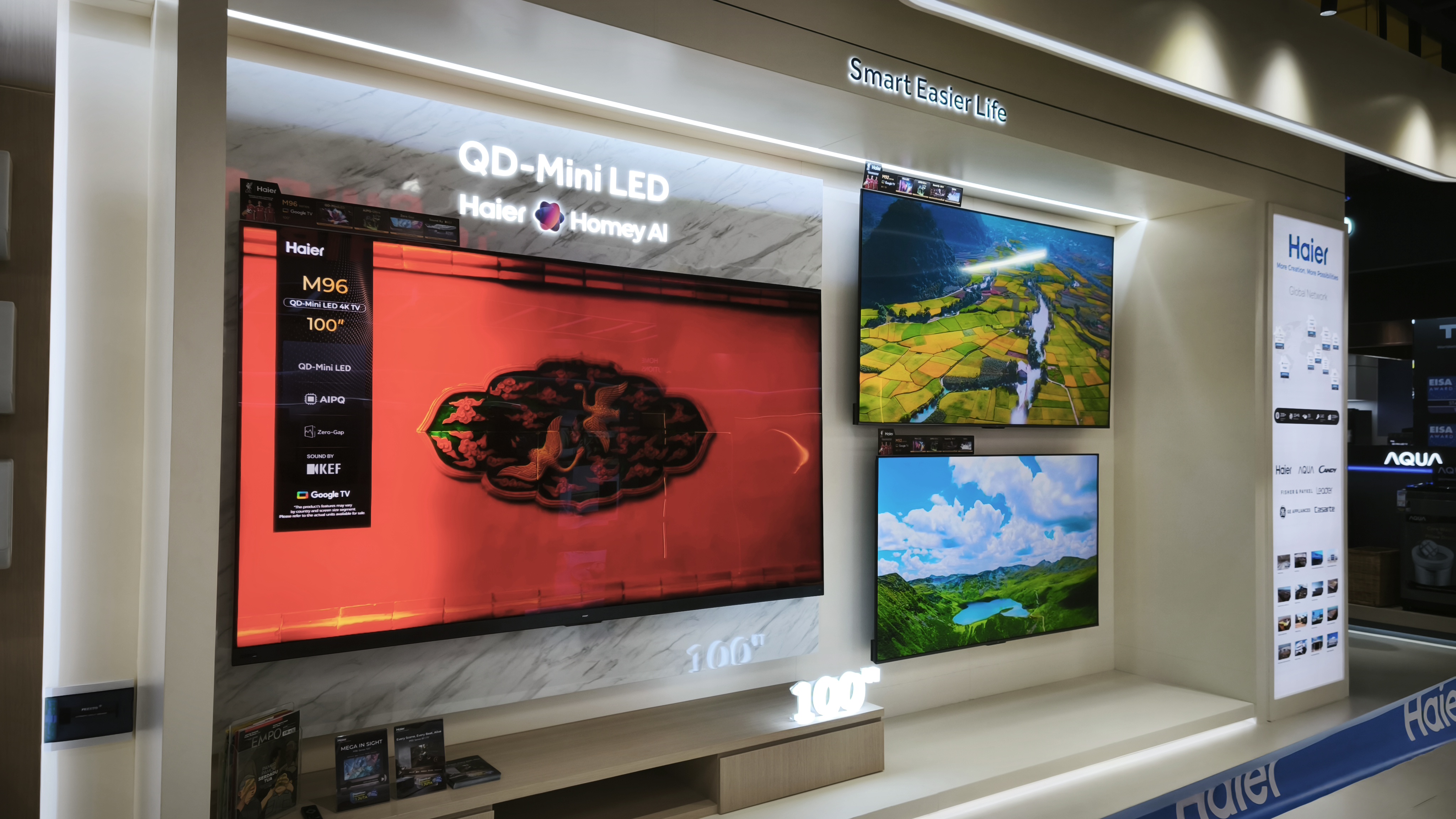 Untuk hiburan rumah, Haier menghadirkan TV seri H100M96GUX dengan teknologi QD-MiniLED dan audio premium dari KEF. Didukung refresh rate hingga 240Hz, TV ini cocok untuk pengalaman menonton sekaligus gaming kelas atas.